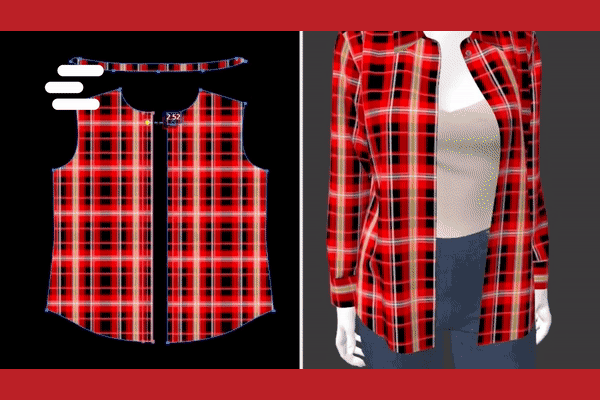 As soon as we get the pattern from the supplier, we use it to construct a digital version of the pattern on one of Browzwear’s true-to-life avatars. Once this is correctly placed, we can stitch the pieces and create the garment, styling it on the avatar to give the right on-body effect.